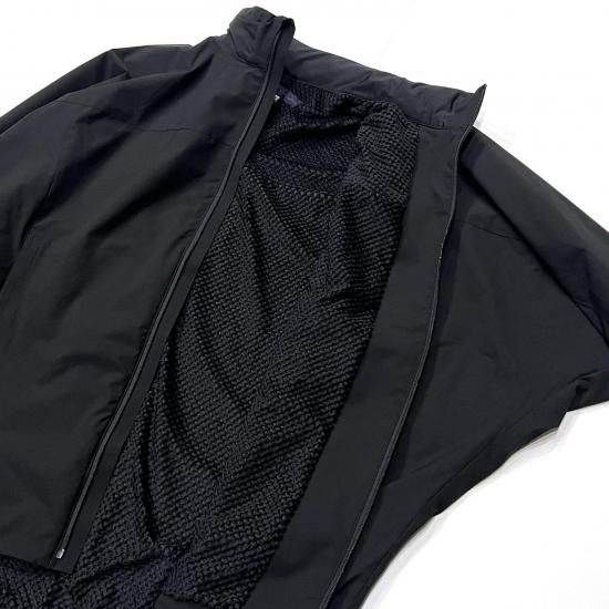 タウンはもちろんのことアウトドアや旅行などのシーンでも活躍するウインドドルマンジャケットです。身体の自由な動きを確保し独特なドレープ感を演出するドルマンスリーブ、シルエットが調整できるドローコード、フードが収納されたスタンドカラー、左右のハンドウォーマーポケットなど多くの機能を備えています。素材には断熱性に優れた表地と、肌と直接接触可能な高機能中綿素材を裏地に使用。