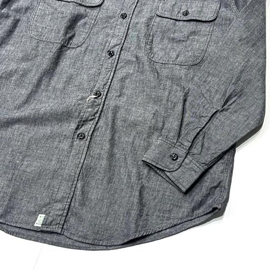 質感の良いブラックシャンブレー素材を使用した両胸のフラップポケットが特徴的なワークシャツです。
