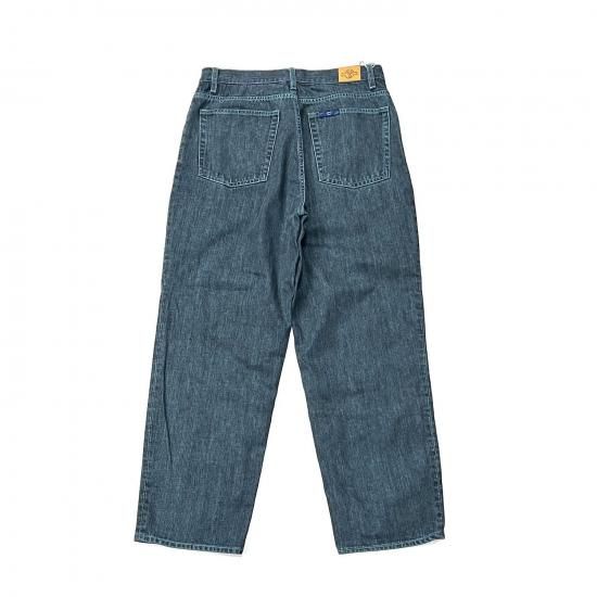 13oz デニムに製品染めを施したLOOSE。深めの股上、ゆったりした腰回りがストレスフリーで非常に穿き易いシルエット。絶妙なテーパード具合は靴の収まりもきれいな1本です。
